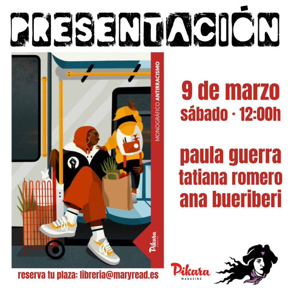 📚 Monográfico Antirracismo, publicado por Píkara Magazine 🗓️ Sábado, 9 de marzo ⏰ 12:00h, con Paula Guerra, Tatiana Romero y Ana Bueriberi 📩 Reserva de plazas: [email protected] “Construir una verdadera solidaridad feminista implica exponer y minar la supremacía de la blanquitud en el seno del feminismo". Rafia Zakaria Como explica Tatiana Romero, los privilegios son […]