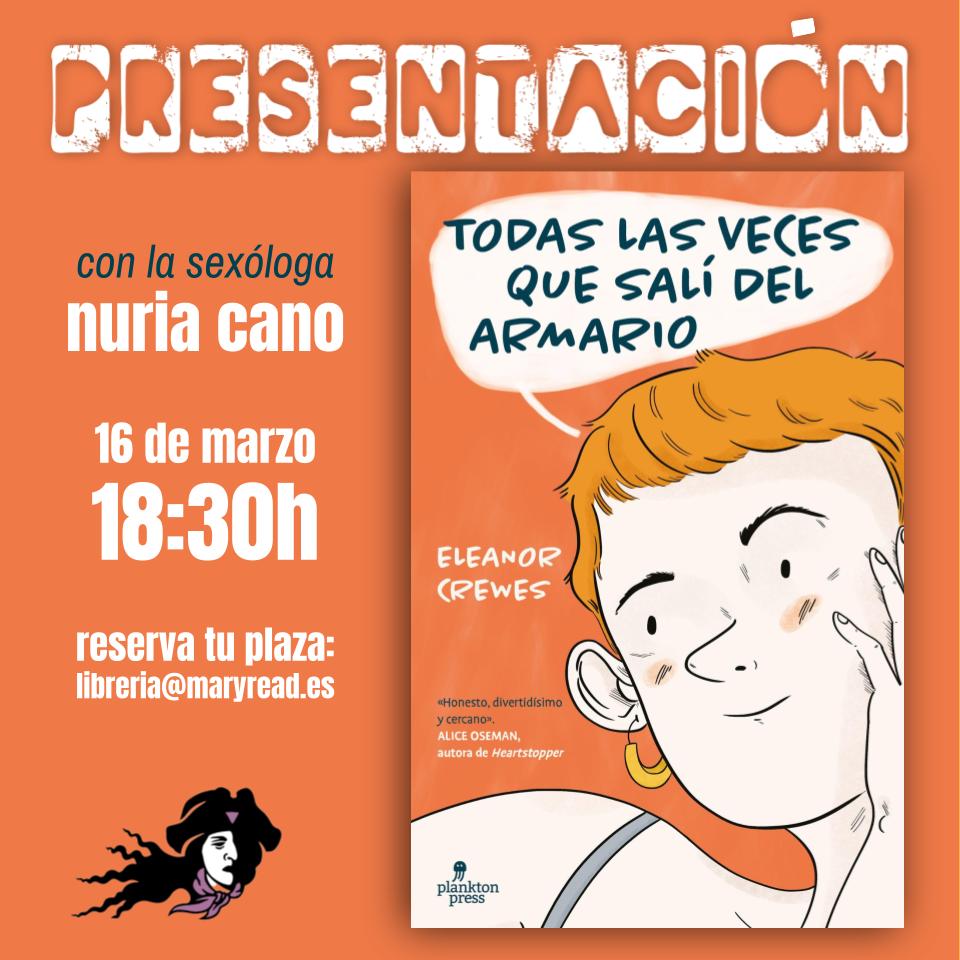 📚 Todas las veces que salí del armario, de Eleanor Crewes, con la sexóloga Nuria Cano 🗓️ Sábado 16 de marzo ⏰ 18:30h 📩 Reserva de plazas: [email protected] Un libro fresco y divertido sobre cómo encontrarse a sí misma. A través de ilustraciones, Eleanor Crewes nos cuenta el arduo proceso de aceptar su sexualidad y […]