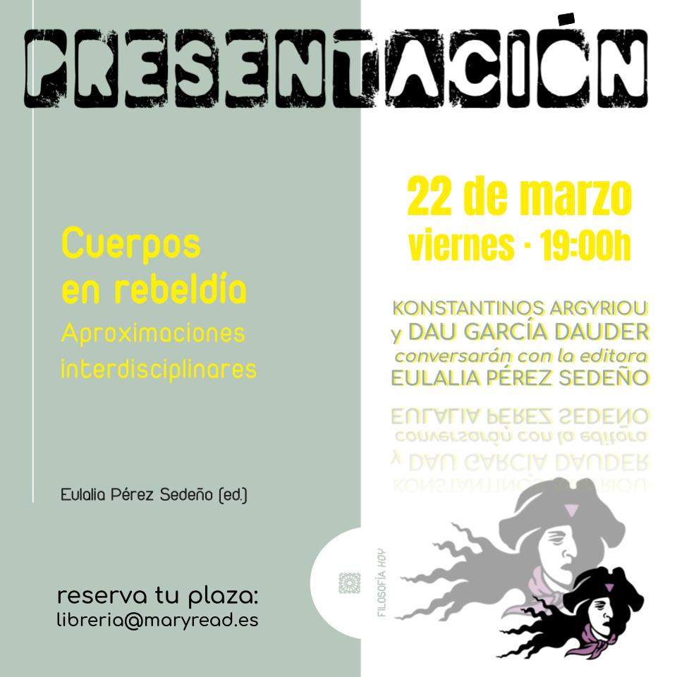 📚 Cuerpos en rebeldía. Aproximaciones interdisciplinares. 🗓️ Viernes 22 de marzo ⏰ 19:00h 📌Con Konstantinos Argyriou y Dau García Dauder conversarán con la editora Eulalia Pérez Sedeño. "Los niños tienen pene y las niñas vagina". Este lema se ha visto en autobuses y carteles vinculados a ciertas ideologías y posturas en los últimos años, y se […]